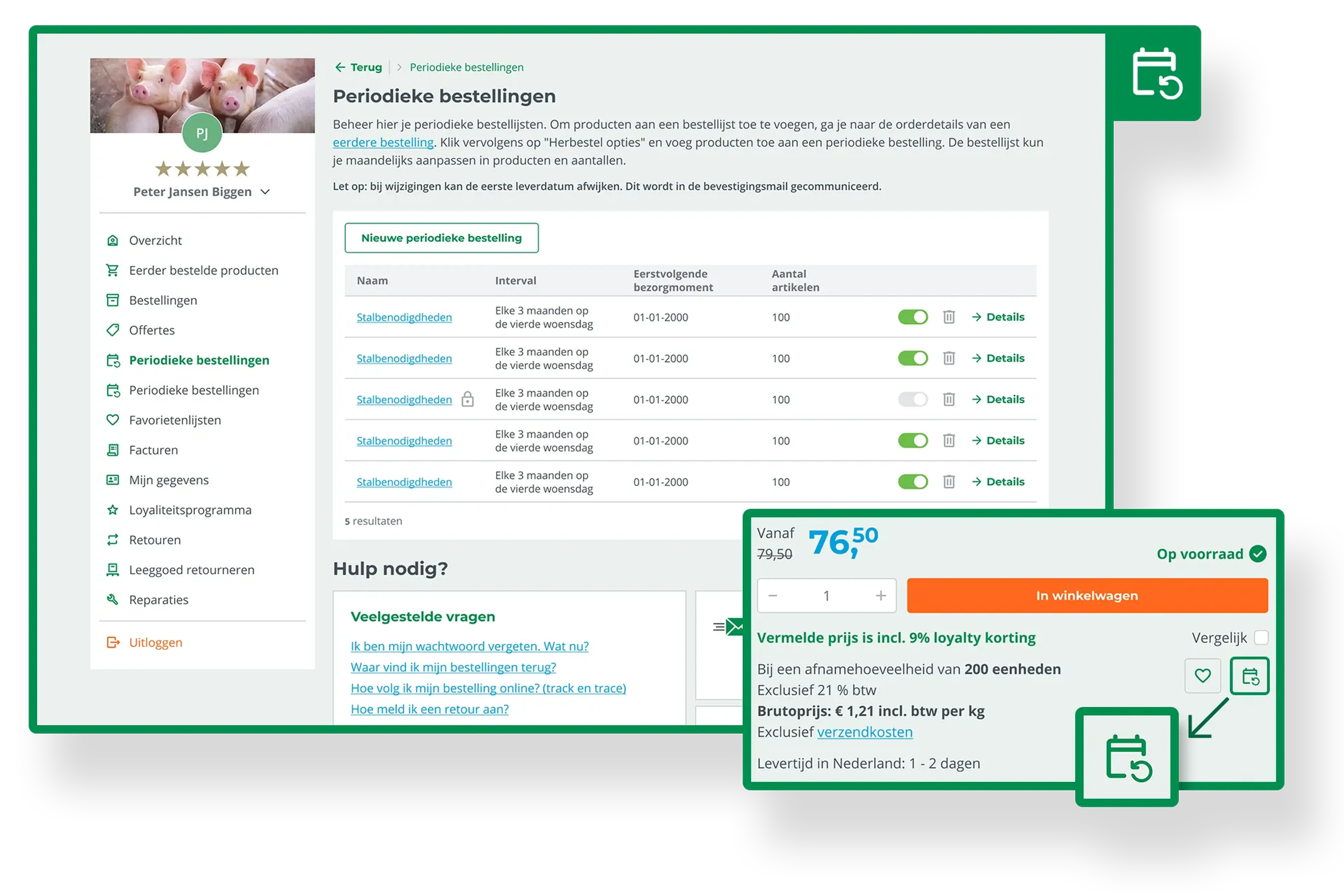 Je kunt ook direct vanaf de productpagina een periodieke bestelling aanmaken. Wanneer je een product bekijkt met alle foto’s en details, kun je meteen een terugkerende bestelling starten.
