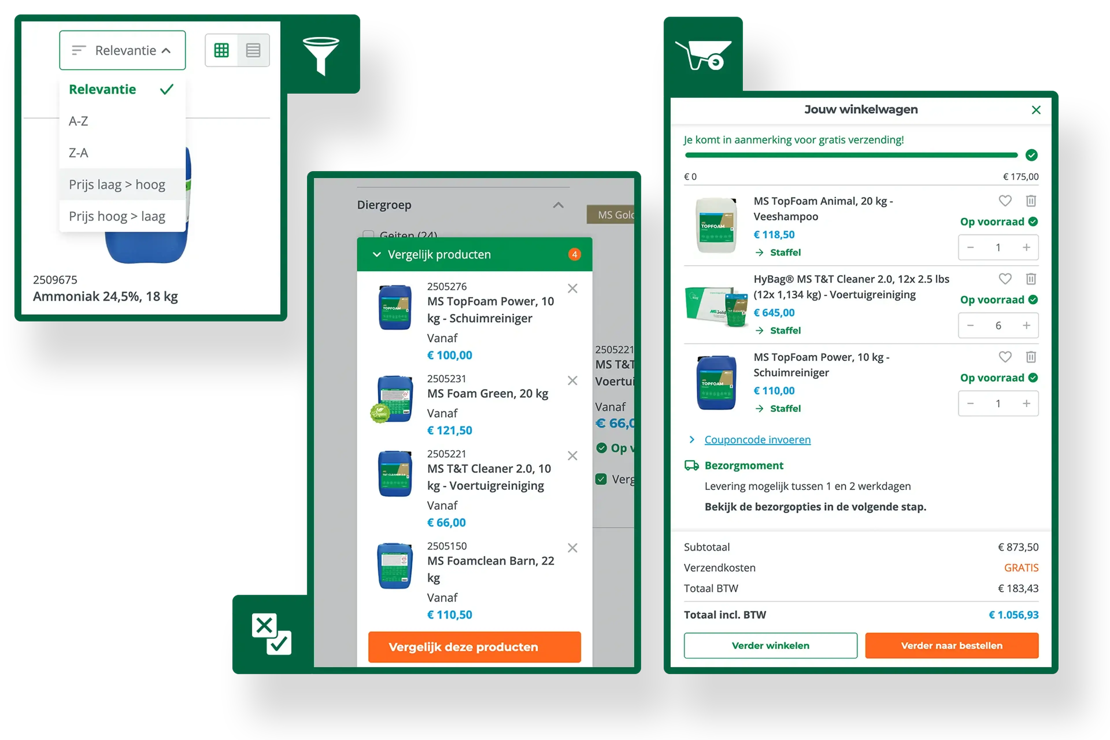 Selecteer meerdere producten met de checkbox en klik op ‘Vergelijken’. Je krijgt direct een duidelijk overzicht van de verschillen, handig om snel de beste keuze te maken.